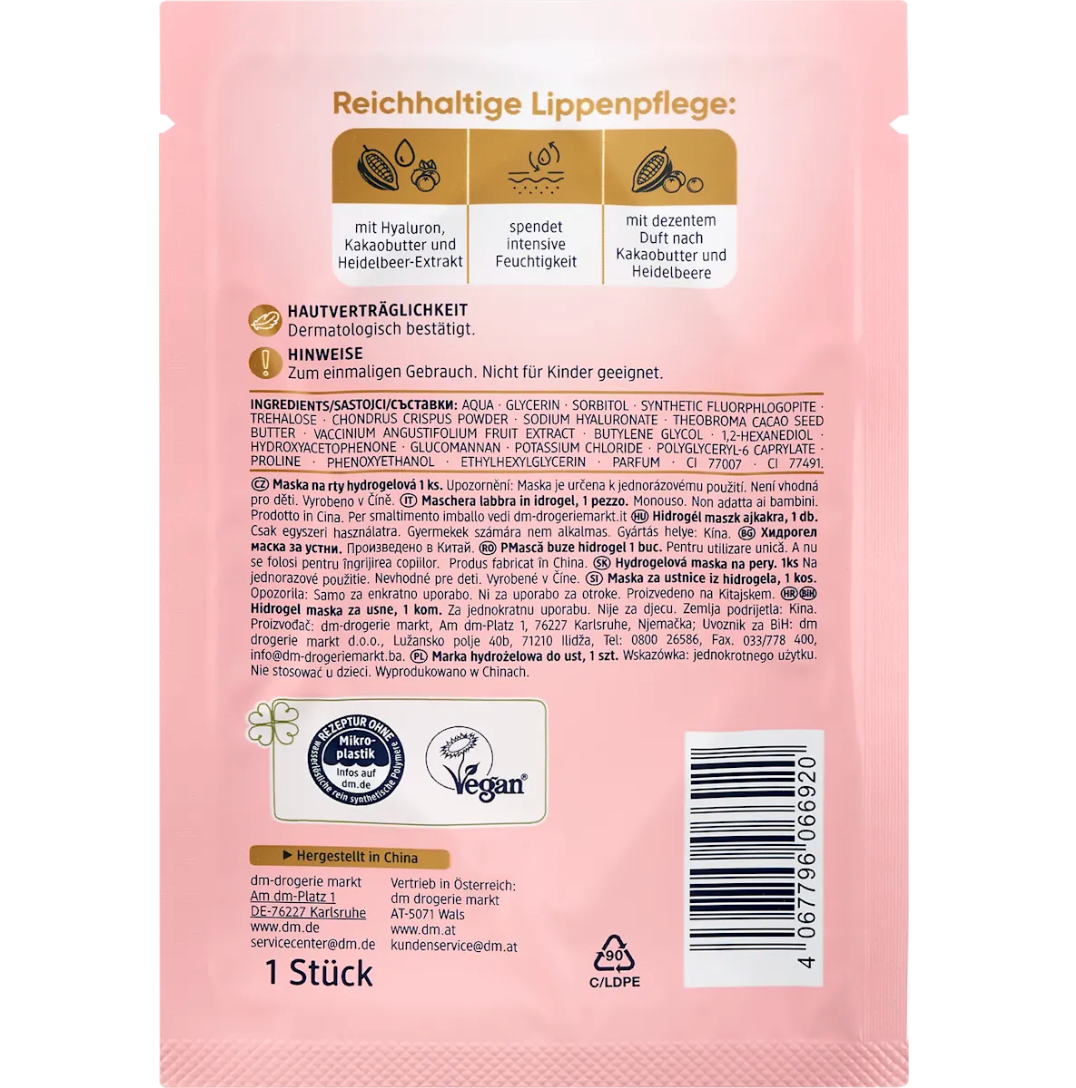 The rich lip mask from Balea has a gentle scent of cocoa butter and blueberry. Additionally, the lip mask provides the lips with intensive moisture, leaving them feeling thoroughly cared for.