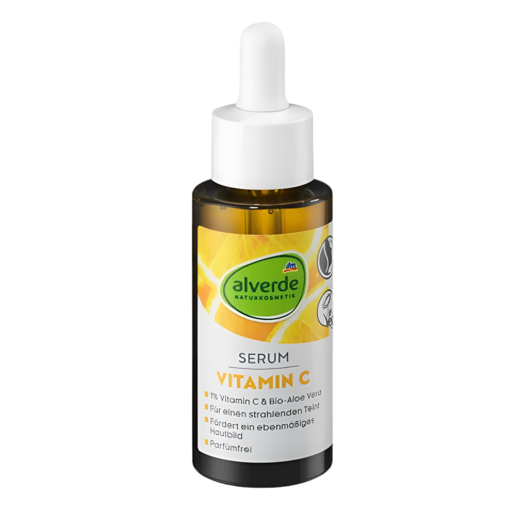 The Vitamin C Serum from alverde NATURKOSMETIK contains not only the powerful Vitamin C but also organic aloe vera, bitter orange extract, and grape water to provide a daily dose of natural glow. Thanks to the antioxidant properties of Vitamin C, the skin is protected from environmental stressors, and the appearance of fine lines and wrinkles can be reduced. The pleasantly light formula with 1% Vitamin C promotes an even skin tone and leaves the skin feeling smoothed.