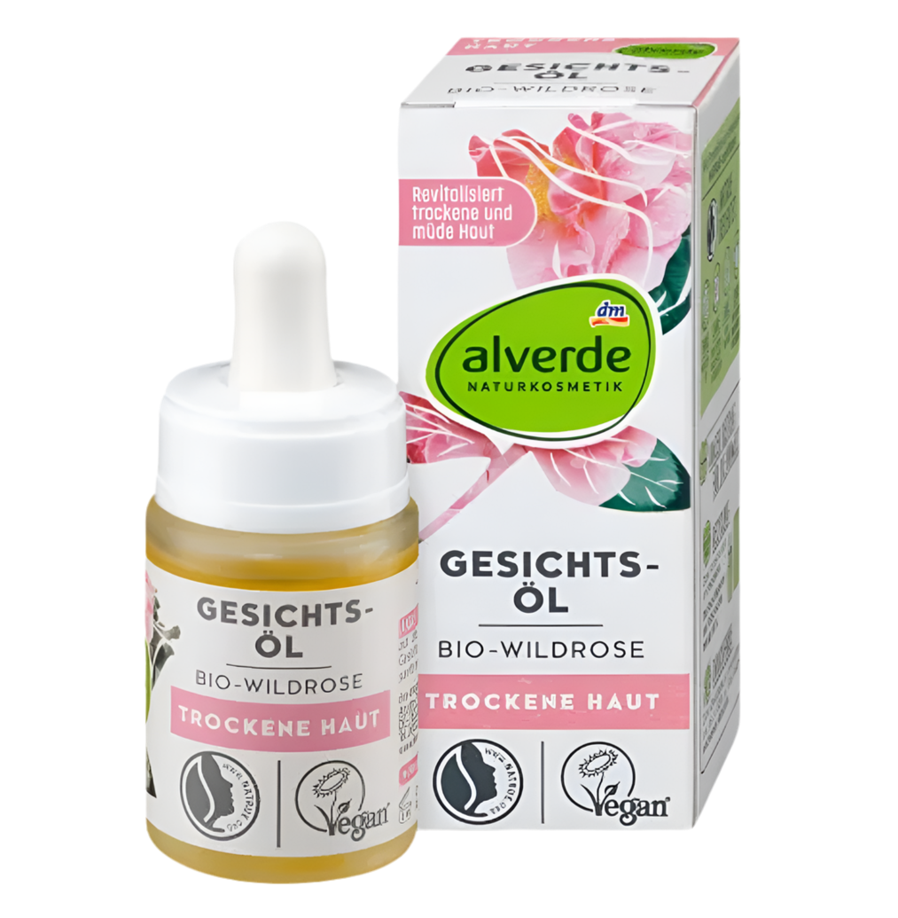 The alverde NATURKOSMETIK Wild Rose Face Oil contains valuable natural oils, including almond, peach kernel, jojoba, and wild rose oils. These oils nourish the skin, leaving it silky soft and enhancing its elasticity. The natural apple seed extract smooths and firms the skin, helping to reduce fine lines.